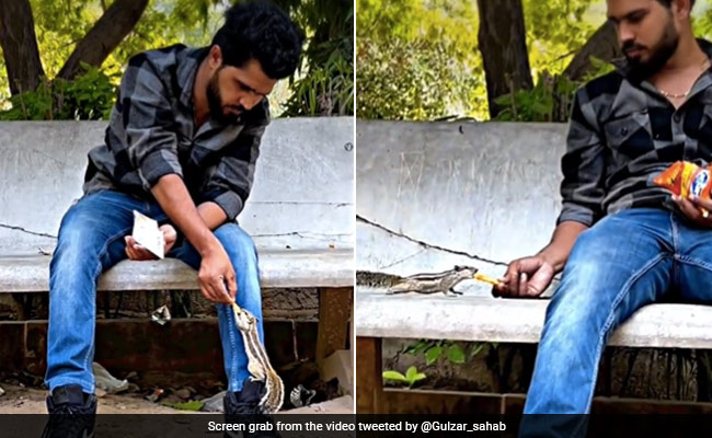 वायरल हो रहे वीडियो में आप देख सकते हैं कि एक शख्स बाहर बैठा कुरकुरे का पैकेट लेकर खा रहा है. थोड़ी देर बाद आप देखेंगे कि उसके आसपास कई गिलहरियों घूम रही हैं. वह उन्हें भी एक-एक करके कुरकुरे खिलाना शुरू कर देता है. ये देखकर और भी गिलहरियां उसके पास आकर कुरकुरे खाने लगती हैं.