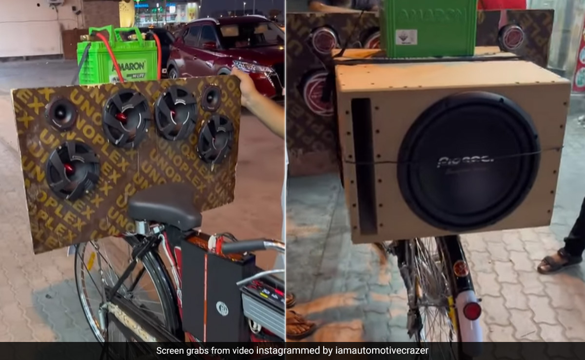 हाल ही में वायरल इस वीडियो में एक भाई साहब ने कुछ ऐसा जुगाड़ भिड़ाया, जिसे आप बार-बार देखने को मजबूर हो जाएंगे. वीडियो में देखा जा सकता है कि, शख्स ने कैसे देसी जुगाड़ लगाकर साइकिल के कैरियर पर 6 स्पीकर का सेट लगाया हुआ है. यही नहीं इसके साथ ही पाइनियर का एक तगड़ा वूफर सेट तैयार किया है, जो यकीनन बेहद कमाल का है. सिस्टम के साथ ही ऊपर एक बैटरी भी लगाई गई है. वीडियो में आप आगे देखेंगे कि, कैसे जबरदस्त तरीके से म्यूजिक सिस्टम का कंट्रोल गद्दी के आगे मौजूद स्पेस पर लगाया गया है. शख्स का जुगाड़ कितना जबरदस्त है, ये ते आप वीडियो में ही देख सकते हैं.