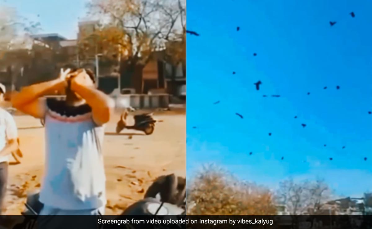 वीडियो में एक शख्स को खुले मैदान में खड़ा दिखाया गया है, जो आत्मविश्वास से कौवे की आवाज़ की नकल कर रहा है. जैसे ही उसकी आवाज़ हवा में गूंजती है, पूरा आकाश में एक दृश्य बन जाता है और बड़ी संख्या में कौवे उमड़ पड़ते हैं. अचानक कौवों से भरे साफ नीले आकाश के मनमोहक दृश्य ने दर्शकों को हैरान कर दिया, जो उस स्थान पर मौजूद लोगों के लिए वास्तव में एक यादगार पल बन गया.