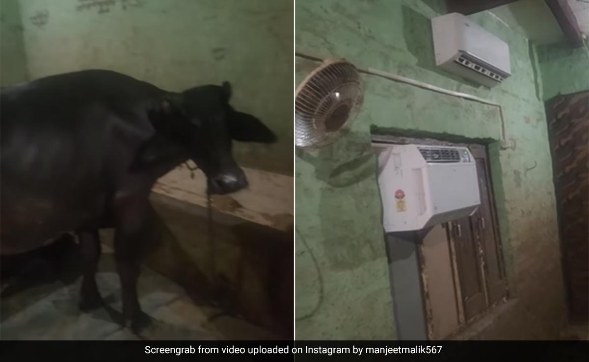 manjeet malik नाम के इंस्टाग्राम यूजर ने इस वीडियो को शेयर किया है, जो अब वायरल हो रहा है. वीडियो में देखा जा सकता है एक बंद कमरे में दो भैंसे बैठी हैं, यहां उनके लिए चारा, लाइट और पंखा सारे इंतजाम किए गए हैं. इतना ही नहीं इस छोटे से कमरे में एसी भी लगी हुई है. वहीं एक दूसरा कमरा है, जिसमें भैंसों के बछड़े हैं. वीडियो ने सोशल मीडिया पर खूब खलबली मचाई है और लोग जमकर कमेंट्स कर रहे हैं.