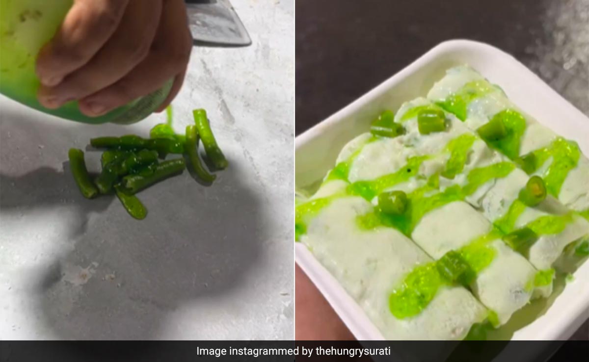 सोशल मीडिया पर इन दिनों फ्यूज़न डिश का ट्रेंड सा चल रहा है. जिसे देखो वही अजीबोगरीब कॉम्बिनेशन वाली डिशेज बना रहा है. अब सोशल मीडिया पर शेयर किए गए एक वीडियो में दिखाया गया है कि कैसे एक शख्स ने हरी मिर्चों का इस्तेमाल करके आइसक्रीम रोल बनाया है.