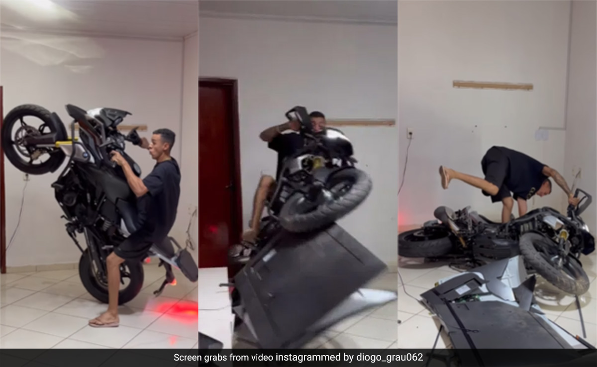 Shocking Stunt Video: आजकल के युवाओं में स्टंट को लेकर एक अलग ही क्रेज देखते ही बनता है. यूं तो सोशल मीडिया पर रोजना कई तरह के स्टंटबाज अपनी कलाबाजी दिखाते नजर आते हैं, जिनमें कुछ अपने हैरतअंगेज स्टंटबाजी से लोगों को चौंका देते हैं, तो कुछ हंसा-हंसाकर लोटपोट कर देते हैं. हाल ही में एक ऐसा ही वीडियो इंटरनेट पर छाया हुआ है, जिसमें एक शख्स घर के अंदर बाइक से स्टंट करता नजर आ रहा है, लेकिन अगले ही पल उसके साथ जो होता है, उसकी शायद उसने सपने में भी कल्पना नहीं की होगी.