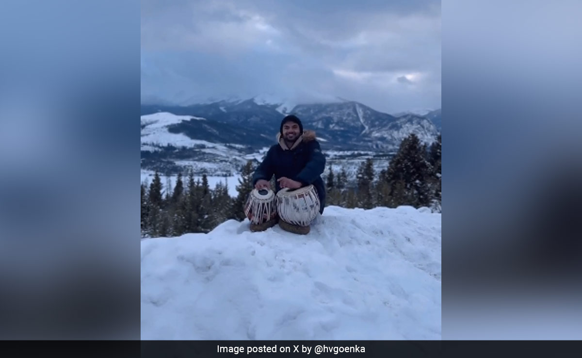 टैलेंट का खजाना अक्सर संगीत कवर के रूप में सामने आता है जो सोशल मीडिया यूजर्स के दिलों पर कब्जा कर लेता है. इनमें से, एक खास वीडियो ने संगीतमय कलात्मकता और मनमोहक दृश्यों के अनूठे मिश्रण के लिए इंटरनेट का ध्यान खींचा है. हर्ष गोयनका द्वारा शेयर किए गए इस वीडियो में एक शख्स बर्फ में तबला बजाता हुआ दिखाई दे रहा है.
