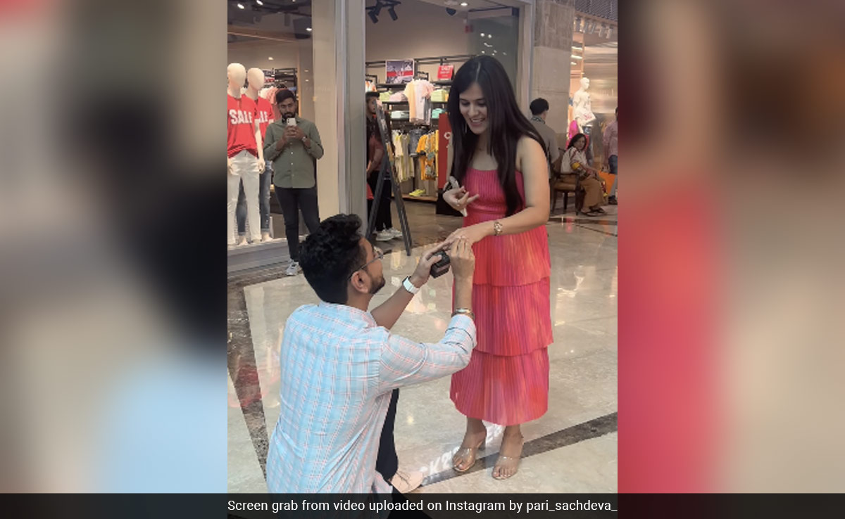 विवाह का प्रस्ताव (marriage proposal) अक्सर किसी भी इंसान के लिए सबसे यादगार दिनों में से एक होता है. यहां तक कि देखने वालों के लिए भी, ऐसे रोमांटिक पल दिल को पिघला सकते हैं. ऐसी ही एक घटना में एक शख्स का मॉल में अपनी गर्लफ्रेंड को प्रपोज करने का वीडियो सोशल मीडिया पर वायरल हो रहा है. इस प्यारी क्लिप पर ऑनलाइन कई प्रतिक्रियाएं आई हैं और कई लोगों ने इसे "प्यारा" कहा है.