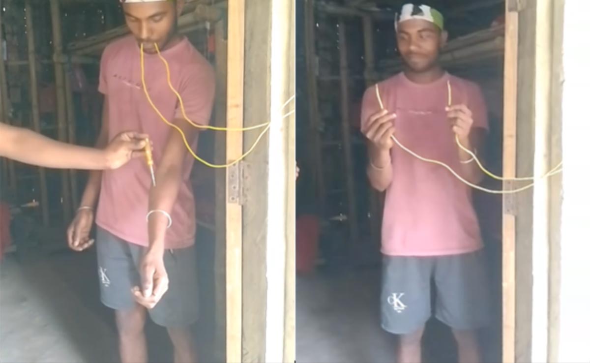 नंगी तारों को मुंह में डालकर दिखाया स्टंट
