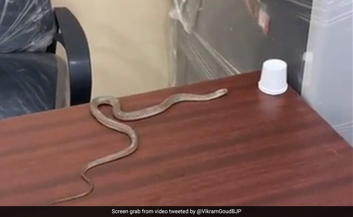 बरसात के मौसम में घरों में कीड़े, मकौड़े आने लगते है. अगर घर के आसपास पार्क या फिर हरे भरे पेड़ हैं तो आपके घर में सांप, बिच्छू जैसे खतरनाक और जहरीले जीव भी आ सकते हैं. जानवर तब घरों में घुसने लगते हैं, जब बरसात की वजह से जंगलों में पानी भर जाता है और उन्हें रहने के लिए जगह नहीं मिलती है. हाल ही में तेलंगाना की राजधानी हैदराबाद (Hyderabad) से एक चौंकाने वाला मामला सामने आया है. यहां जब एक शख्स के घर सांप पकड़ने के लिए नगर निगम के अधिकारी नहीं पहुंचे तो गुस्से में वो शख्स सांप पकड़कर नगर निगम के दफ्तर पहुंच गया और उस सांप को ऑफिस में ही छोड़ दिया. अब इसी घटना का वीडियो सोशल मीडिया पर जमकर वायरल हो रहा है. वीडियो को हैदराबाद बीजेपी के युवा नेता विक्रम गौड़ ने ट्विटर पर शेयर किया है.