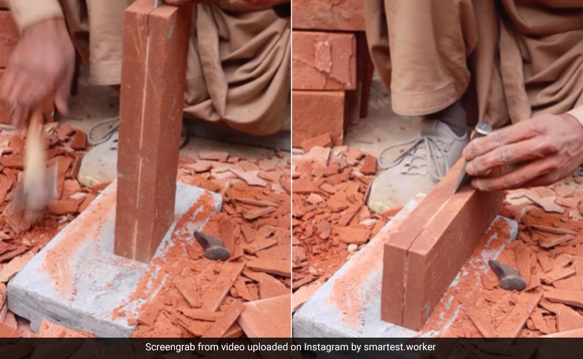 एक मजदूर द्वारा ईंट या पत्थर के ब्लॉक को आसानी से साफ स्लैब में काटने का एक वीडियो वायरल हो रहा है. इस वीडियो में, एक शख्स ईंट के एक टुकड़े को उठाता है और छेनी और हथौड़े का उपयोग करके इसे पतले स्लैब में काटते हुए नजर आ रहा है. इस वीडियो के बारे में दिलचस्प बात यह है कि ईंट के सभी पांचों टुकड़े एक समान आकार और एक ही मोटाई के हैं.