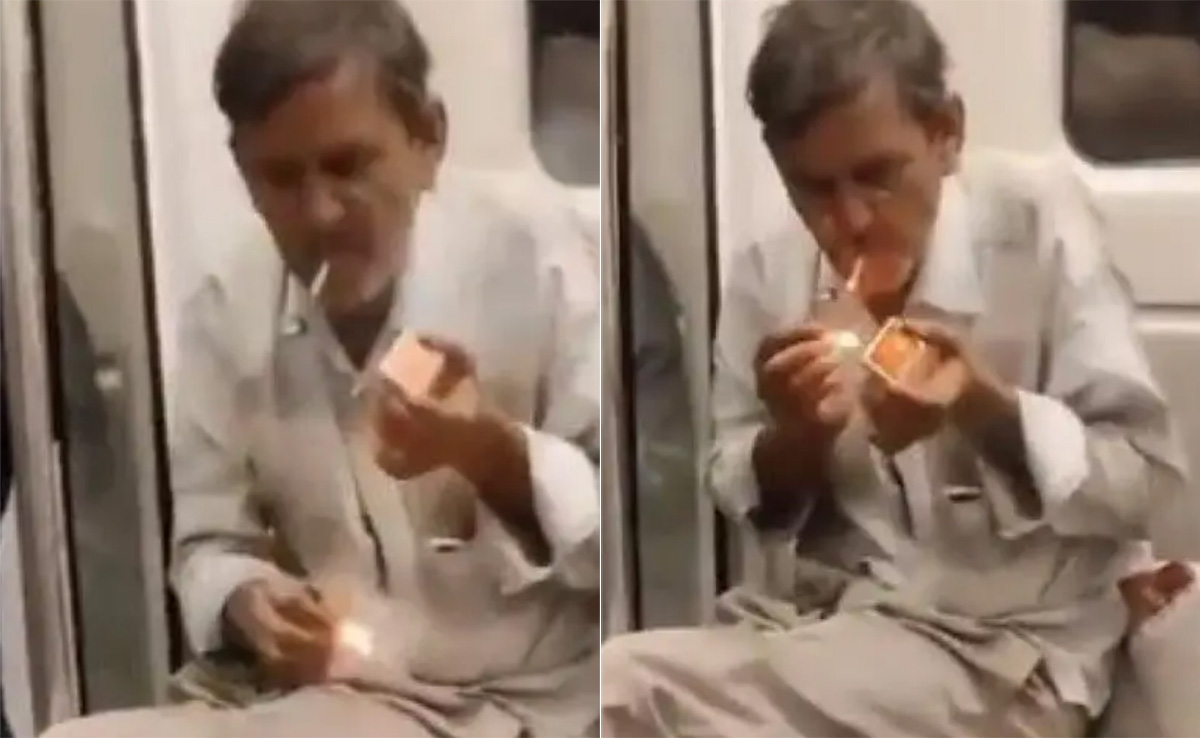 मेट्रो में बीड़ी पीता दिखा शख्स (Man seen smoking beedi in metro)