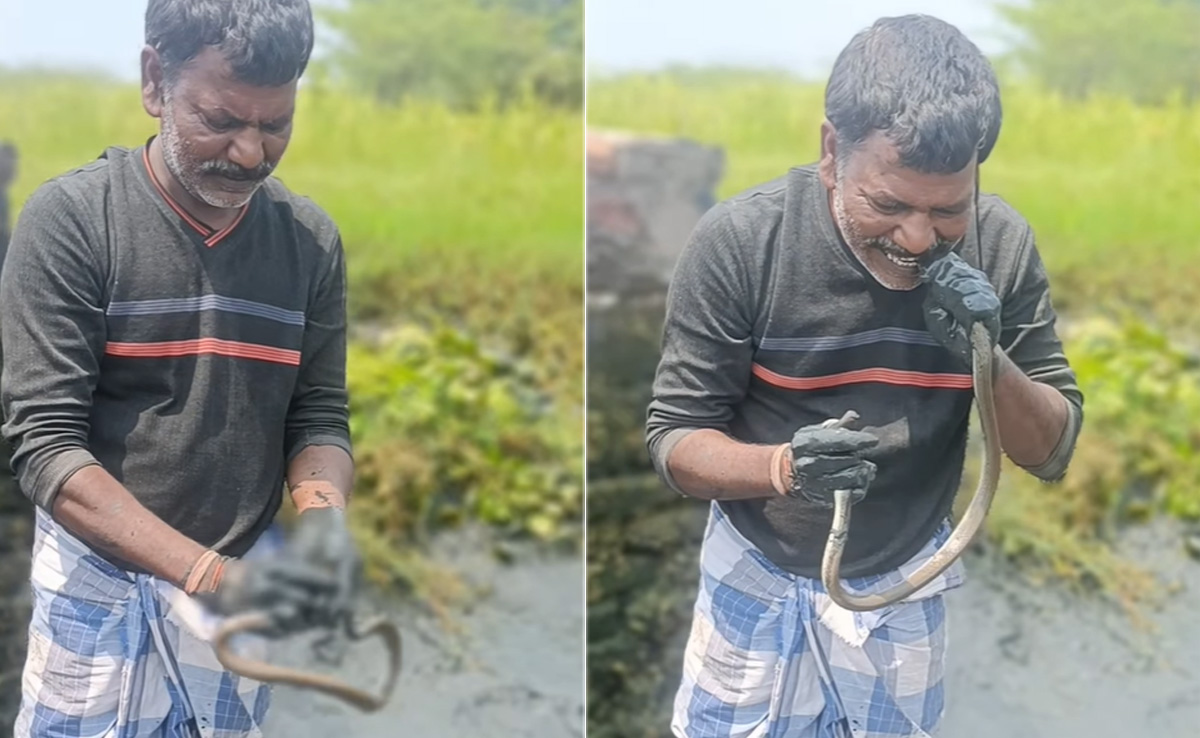 वीडियो में देखा जा सकता है कि, एक शख्स कीचड़ के बीच खड़ा है. शायद वह पानी भरे खेत में काम कर रहा है और उसी दौरान उसे जिंदा सांप मिल जाता है. इस सांप को वह अपने हाथों से ऐसे उठा लेता है जैसे कोई निर्जीव सी चीज हो, लेकिन तगड़ा झटका तो इसके बाद लगता है, जब वह सांप के सिर को पकड़ कर उसे अपनी उंगलियों से दबा लेता है और फिर अपने मुंह में डालकर दांतों से चबाता है और फिर जमीन पर थूक देता है. इसके बाद वह सांप को साइड में फेंक देता है. ये सब करते हुए वह इतना सहज है, मानो ये उसका रोज का काम हो.