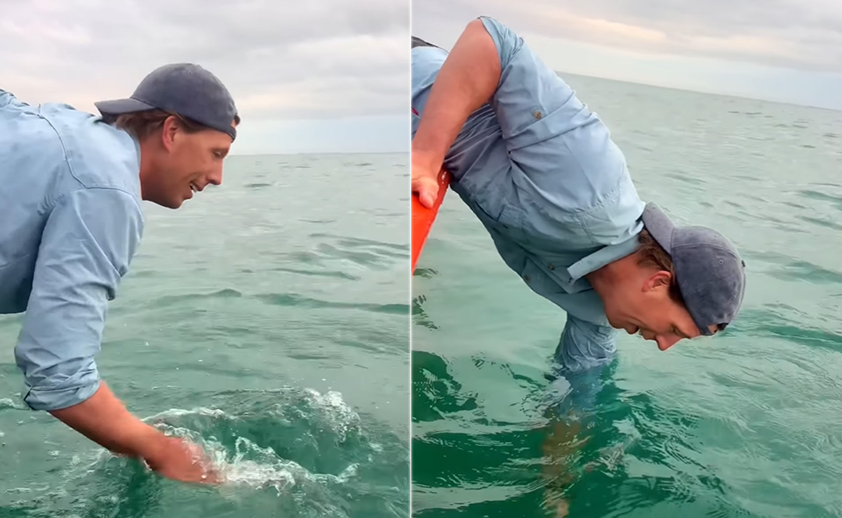 पानी में से अचानक निकल आया ये जीव (Man touch whale with hand viral video)