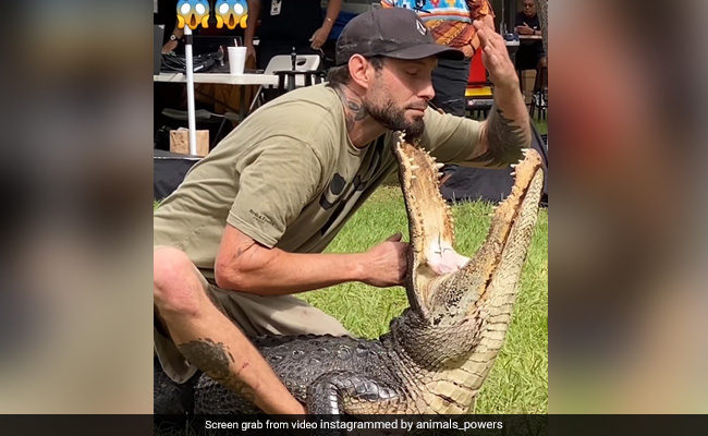 वायरल वीडियो में आप देख सकते हैं कि एक शख्स मगरमच्छ की पीठ पर चढ़कर बैठा है. खूंखार जानवर का मुंह ऊपर की ओर उठा है और उसने अपना जबड़ा खोला हुआ है, जिसके ऊपरी हिस्से पर शख्स ने अपनी ठुड्डी रखी हुई है. वहीं आस-पास मौजूद लोग शख्स का बहादुरी भरा कारनामा देख रहे हैं. आप देखिए कैसे शख्स अपना दांया हाथ मगरमच्छ की आंखों पर रखता है और धीरे-धीरे बांया हाथ मगरमच्छ के खुले जबड़े में डालने लगता है, तभी झटके से मगरमच्छ जबड़ा बंद कर लेता है. और शख्स भी बिना पलक झपकाए अपने हाथ को बाहर निकाल लेता है. ये देखकर तो किसी की भी धड़कनें तेज़ हो जाएंगी.