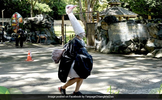 थाईलैंड के एक चिड़ियाघर (Thailand zoo) में एक जानवर से बचने की कवायद ने एक कर्मचारी को शुतुरमुर्ग के रूप में कपड़े पहने हुए भागने के लिए प्रेरित किया, जिसे बाद में एक विशाल मछली पकड़ने के जाल के साथ पकड़ा गया. चियांग माई चिड़ियाघर (Chiang Mai zoo) ने फेसबुक पर ड्रिल की तस्वीरें शेयर कीं, जिसमें एक शख्स को 8 फुट लंबे शुतुरमुर्ग (ostrich) के रूप में कपड़े पहने देखा गया था, जिसके सिर पर एक विशाल पक्षी की गर्दन बंधी हुई थी.