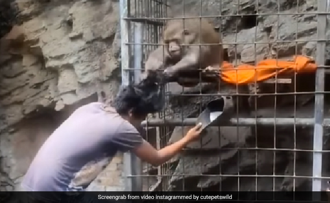 वायरल हो रहे इस वीडियो में आप देख सकते हैं कि एक बंदर पिंजरे में बंद है और वहीं खड़ा शख्स उसे छेड़ने लगा और गुस्से में आकर बंदर ने उसके बाल पकड़े और ज़ोर से अपनी ओर खींचने लगा. शख्स ने काफी कोशिश की अपने बाल छुड़ाने की लेकिन बंदर छोड़ने को तैयार ही नहीं. आप देखिए कैसे मजबूती से बंदर ने शख्स के बाल पकडे हैं और खींच रहा है.