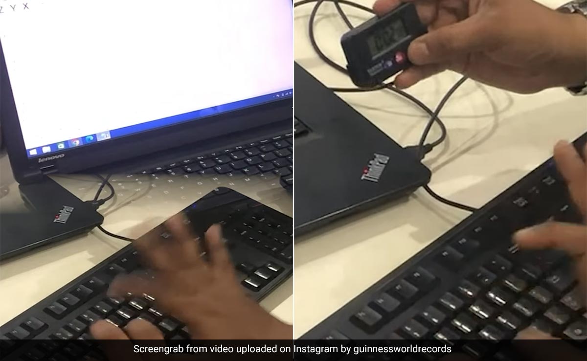 हैदराबाद (Hyderabad) के एक शख्स का अनोखा रिकॉर्ड बनाते हुए एक वीडियो सोशल मीडिया पर लोगों का ध्यान खींच रहा है. क्लिप में ये शख्स कंप्यूटर पर अंग्रेजी अल्फाबेट (English alphabet) को उल्टा टाइप करते नजर आ रहे हैं. लेकिन हैरानी वाली बात तो ये है कि उन्होंने महज 2.88 सेकंड में ऐसा किया, जो अब एक विश्व रिकॉर्ड (World Record) बन गया है. बिजली की रफ्तार में कीबोर्ड पर उंगलियां चलाते इस शख्स को देख आप भी हैरत में पढ़ जाएंगे.