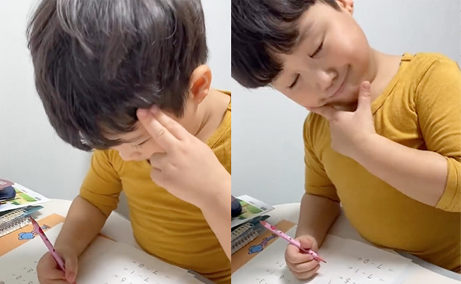 हाल ही में वायरल हो रहे इस 14 सेकंड के वीडियो में एक छोटा सा बच्चा बड़े ही अलग तरीके से पढ़ाई करते दिखाई दे रहा है. यकीनन आपने इससे पहले कभी किसी बच्चे को इस तरह पढ़ते देखा होगा. वीडियो में बच्चा मजे से अपना होमवर्क करता नजर आ रहा है. वीडियो में बच्चे की पढ़ाई का तरीका देखकर एक मिनट के लिए आप भी कंफ्यूज हो जाएंगे. वीडियो में बच्चा 'निंजा टेक्निक' लगाकर बड़ी तेजी से गणित के सारे सवालों को एक के बाद एक हल करता चला जाता है. इस दौरान बच्चा पढ़ाई के बीच में स्माइल देते हुए पोज मारता भी नजर आ रहा है.