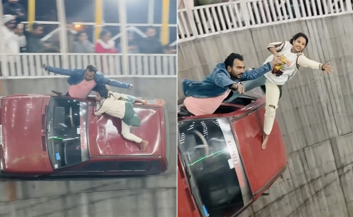 faraz.stunt.rider नाम के इंस्टाग्राम अकाउंट से शेयर हुए इस वीडियो में मौत के कुएं के अंदर एक लड़का-लड़की कार पर खतरनाक स्टंट करते नजर आ रहे हैं. लड़का कार को खतरनाक तरीके से ड्राइव कर रहा है, उसका धड़ पूरी तरह कार से बाहर है और वो हवा में लहराता दिखाई दे रहा है. वहीं लड़की ने तो गजब ही कर दिया. वो इस कार के ऊपरी हिस्से पर लटकी हुई नजर आ रही है और इसी तरह करतब भी दिखा रही है. वीडियो को कैप्शन देते हुए लिखा है, 'कॉन्फिडेंस या ओवर कॉन्फिडेंस.'