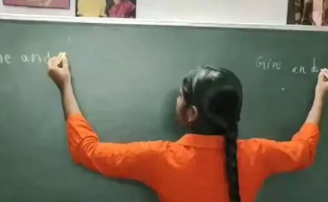 Aadi Swaroopa Handwriting Skill: क्या आपने कभी किसी को दोनों ही हाथों से लिखते हुए देखा है? अगर नहीं तो हाल ही में वायरल इस वीडियो को देखना तो बनता है, जिसे देखकर आपको फिल्म '3 इडियट्स' के एक्टर बोमन ईरानी का किरदार डॉ. वीरू सहस्त्रबुद्धे उर्फ 'वायरस' याद आ जाएंगे, जो एक ही समय में दोनों हाथों से लिख लेते थे, लेकिन रियल लाइफ में भी ऐसे कुछ लोग हैं, जो एक साथ एक ही समय में दोनों ही हाथों से लिखने में निपुण हैं. इस वीडियो में दिखाई दे रही एक लड़की बड़ी तेजी से एक साथ दोनों हाथों से लिखती नजर आ रही है, जिसे देखकर एक मिनट के आपका दिमाग भी चकरा जाएगा.