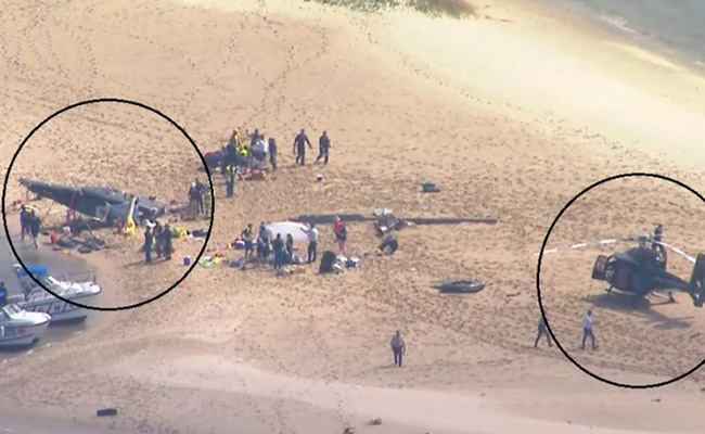 Helicopter Collision in Australia Videos: सोशल मीडिया पर हाल ही में चौंका देने वाला वीडियो सामने आया है, जिसमें समुद्र तट के ऊपर दो हेलीकॉप्टर के आपस में टकरा जाने के बाद, उनका दूर तक फैला मलबा देखा जा सकता है. वीडियो ऑस्ट्रेलिया का बताया जा रहा है. इस हादसे में कई लोगों की मौत हो चुकी है, वहीं कुछ लोग बुरी तरह जख्मी हो चुके हैं. बताया जा रहा है कि, दुर्घटना के बाद एक हेलीकॉप्टर गोल्ड कोस्ट पर 'मेनबीच' के निकट सुरक्षित उतर गया. यह स्थान क्वीन्सलैंड राज्य के ब्रिस्बेन से 45 मील दूर दक्षिण में है.