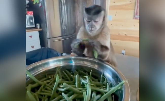 वायरल हो रहे इस क्यूट से मंकी वीडियो के वीडियो को देखकर लोग अपना दिल हार बैठे हैं. इस वीडियो एक बंदर को काम में गुम देखा जा रहा है. क्या आपने इससे पहले किसी बंदर को किचन में इस तरह काम करते देखा है? अगर आपका जवाब ना है तो इस वीडियो को देखना तो बनता है. वीडियो की शुरुआत में एक बंदर को घर की किचन में इंसानों की तरह ही बैठकर बींस तोड़ते देखा जा सकता है. इस दौरान बंदर जो एक्सप्रेशन दे रहा है, उसे देखकर आप भी अपनी हंसी कंट्रोल नहीं कर पाएंगे.