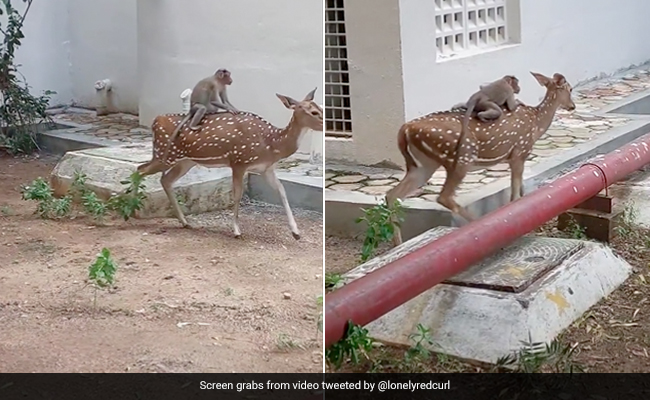 वायरल हो रहे इस वीडियो में एक बंदर को हिरण की पीठ पर बैठकर सवारी करते हुए देखा जा सकता है. हिरण को अपनी पीठ पर एक बंदर के साथ बिना किसी परवाह के इधर-उधर घूमते देखा जा सकता है. यह एक रिहायशी इलाका लग रहा है क्योंकि आसपास बने घर दिखाई दे रहे हैं.