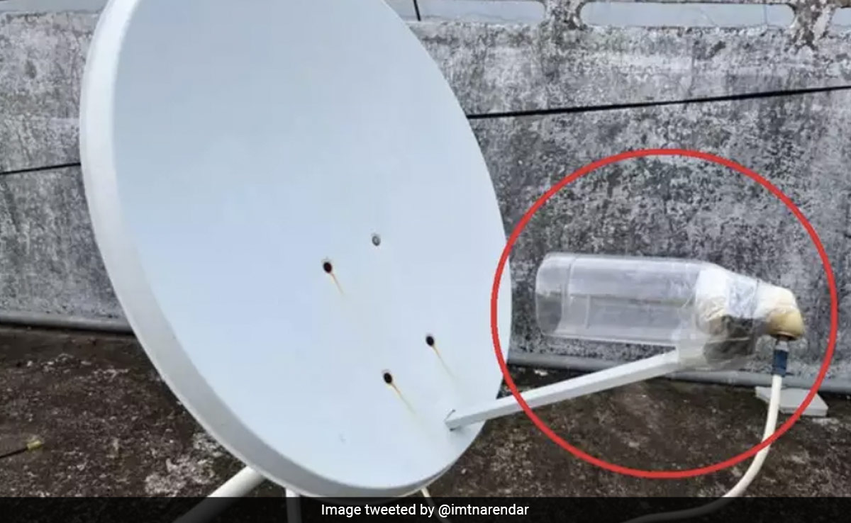 वायरल हो रही इस अद्भुत जुगाड़ की तस्वीर में देखा जा सकता है कि, कैसे बरसात में मौसम साफ नहीं होने के कारण नो सिग्नल की समस्या से छुटकारा पाने के लिए एक शख्स ने अजीबोगरीब जुगाड़ भिड़ाया है. सोशल मीडिया प्लेटफॉर्म ट्विटर पर इस पोस्ट को शेयर किया गया है, जिसे लोग खूब देख और पसंद कर रहे हैं. यूं तो इंटरनेट पर एक से बढ़कर एक कमाल के जुगाड़ पोस्ट देखने को मिलते रहते हैं, लेकिन यह तो कमाल है.