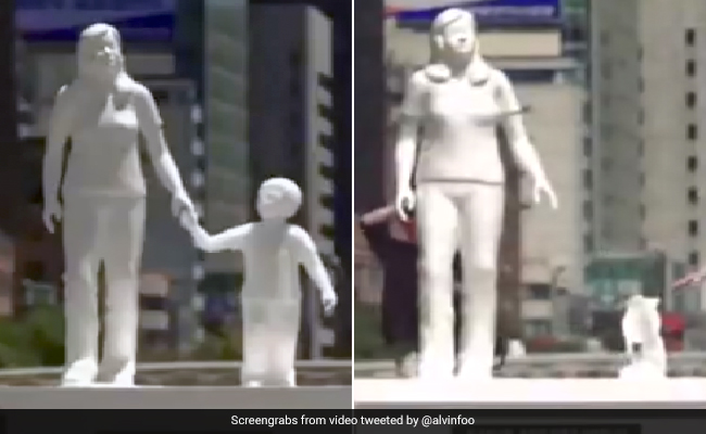 ग्लोबल वॉर्मिंग कितनी गंभीर समस्या है, इसे आम लोगों को समझाने के कई प्रयास हुए हैं. कभी स्लोगन कॉम्पिटिशन तो कभी पेंटिंग कॉम्पिटिशन्स के जरिए इस मामले में अवेयरनेस लाने की कोशिशें की जाती हैं. लोगों को ज्यादा से ज्यादा पेड़ लगाने के लिए भी इंस्पायर किया जा रहा है. इसी बीच एक स्टैच्यू का वीडियो सोशल मीडिया पर वायरल हो रहा है, जिसके जरिए ग्लोबल वॉर्मिंग पर एक सशक्त मैसेज देने की कोशिश की गई है. इस प्रतिमा में मां और बेटे साथ नजर आ रहे हैं, लेकिन उनका धीरे-धीरे जो हाल हो रहा है, वो चौंकाने वाला है. उनका हाल देखकर कई राहगीर ठिठकते भी हैं, लेकिन अफसोस कोई उनकी मदद नहीं कर सकता.