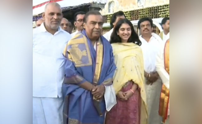 रिलायंस इंडस्ट्रीज लिमिटेड (आरआईएल) के अध्यक्ष मुकेश अंबानी (Mukesh Ambani) शुक्रवार को आंध्र प्रदेश के तिरुमाला में भगवान वेंकटेश्वर मंदिर (Lord Venkateswara temple in Andhra Pradesh) में दर्शन के लिए पहुंचे. अंबानी के साथ उनके बेटे अनंत की मंगेतर राधिका मर्चेंट (Radhika Merchant) और रिलायंस रिटेल लिमिटेड के निदेशक मनोज मोदी भी थे.