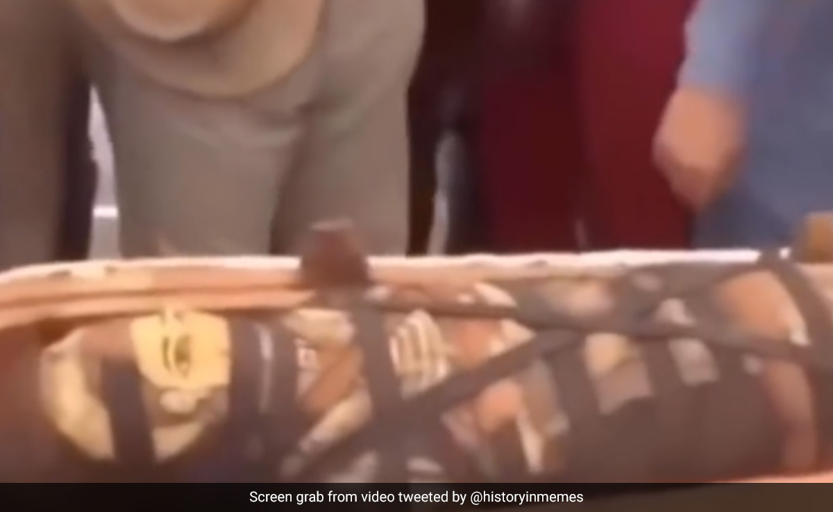 हिस्ट्री विड्स नाम के ट्विटर हैंडल ने ममी का ये वीडियो शेयर किया है. जिसमें आप देख सकते हैं एक ममी का कॉफिन खोला जा रहा है. ममी रखने के लिए बनाए गए ताबूत को Sarcophagus कहा जाता है. इस ताबूत को आम लोगों के सामने खोला गया. जिसमें मौजूद ममी ढाई हजार साल पुरानी बताई जा रही है. जब ये ताबूत खुला तो सामने नजर आ रही ममी को देखकर लोगों की आंखें फटी रह गईं. ममी पूरी तरह से सुरक्षित थी. उस पर ढाई हजार साल पहले प्रचलित धार्मिक कपड़ा भी लिपटा हुआ था.