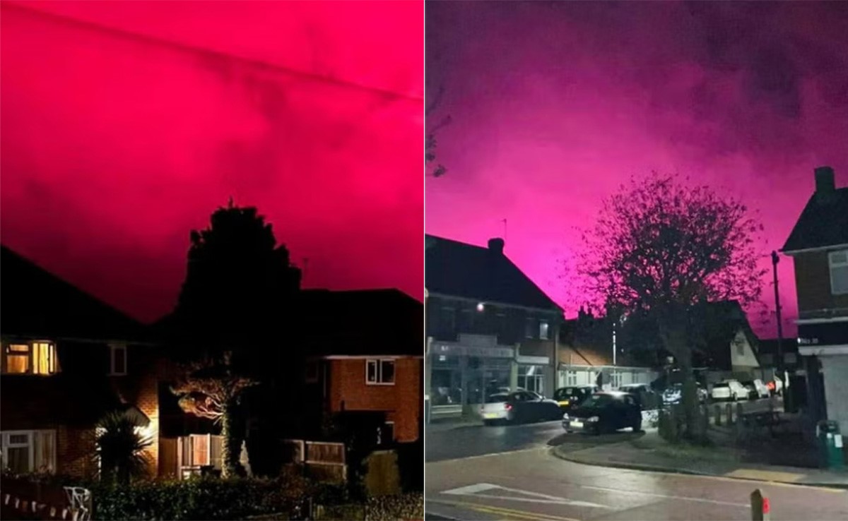 प्रकृति कई रहस्यों से भरी है, लेकिन जब इन रहस्यों से इंसानों का आमना-सामना होता है, तो यकीनन हैरानी होना लाजिमी है. सोशल मीडिया पर अक्सर ऐसे वीडियो और तस्वीरें सामने आती रहती हैं, जिन्हें देखकर कई बार खुद की ही आंखों पर यकीन कर पाना मुश्किल हो जाता है. हाल ही में एक ऐसा ही नजारा सामने आया ब्रिटेन में, जहां अचानक से एक जगह का आसमान भयानक रूप से रोशन हो गया. सोशल मीडिया पर ये तस्वीरें हर किसी को हैरान कर रही हैं. वायरल हो रही इन तस्वीरों में देखा जा सकता है कि, ब्रिटेन का एक हिस्सा रहस्यमयी गुलाबी आकाश से जगमगा उठा.