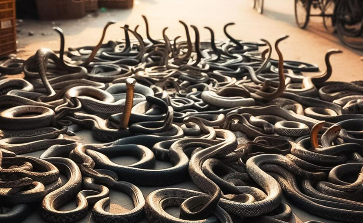 - सबसे पहली तस्वीर है नागपुर शहर की, जिसमें कई सारे सांप नजर आ रहे हैं.
