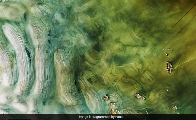 अगली कुछ लाइनों में, उन्होंने यह भी लिखा, कि "यह 31 जनवरी को लैंडसैट 8 पर ऑपरेशनल लैंडसैट इमेजर द्वारा प्राप्त की गई एक प्राकृतिक रंग की छवि है. पानी और नमक के खंड की मलिनकिरण पर ध्यान दें, जो संयोजन के कारण हो सकता है अपवाह, ज्वालामुखी तलछट, और पानी में पनपने वाले रोगाणु या शैवाल."
