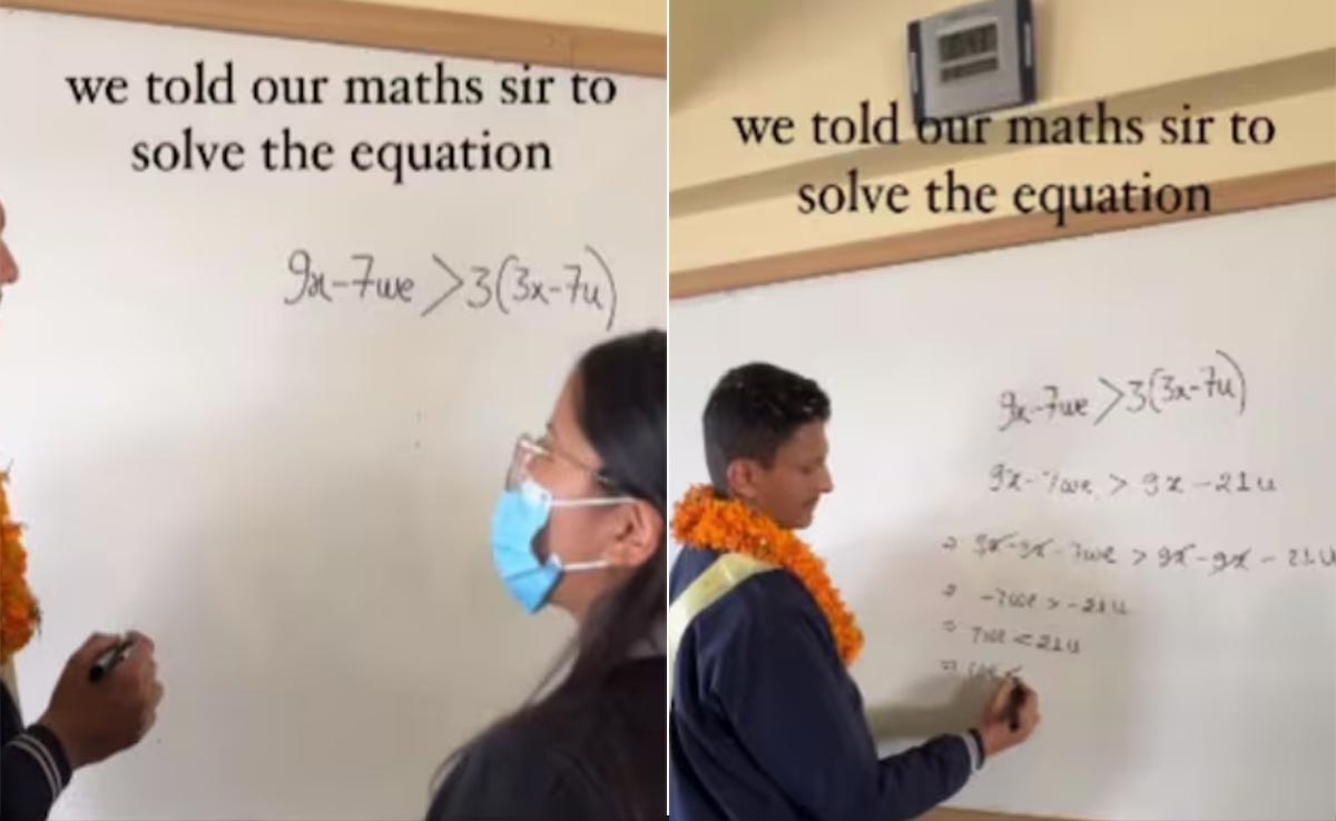 वीडियो में एक स्टूडेंट को व्हाइट बोर्ड पर बीजगणित (अल्जेब्रा) का एक सवाल लिखते और अपने शिक्षक से इसे हल करने का रिक्वेस्ट करते हुए देखा जा रहा है. छात्रों द्वारा तैयार किया गया समीकरण एक अप्रत्याशित, लेकिन दिल छू लेने वाला परिणाम देता है. यह रिजल्ट क्लासरूम में मौजूद सभी छात्रों और बाद में वीडियो देखने वाले यूजर्स सबको हैरान कर देता है.