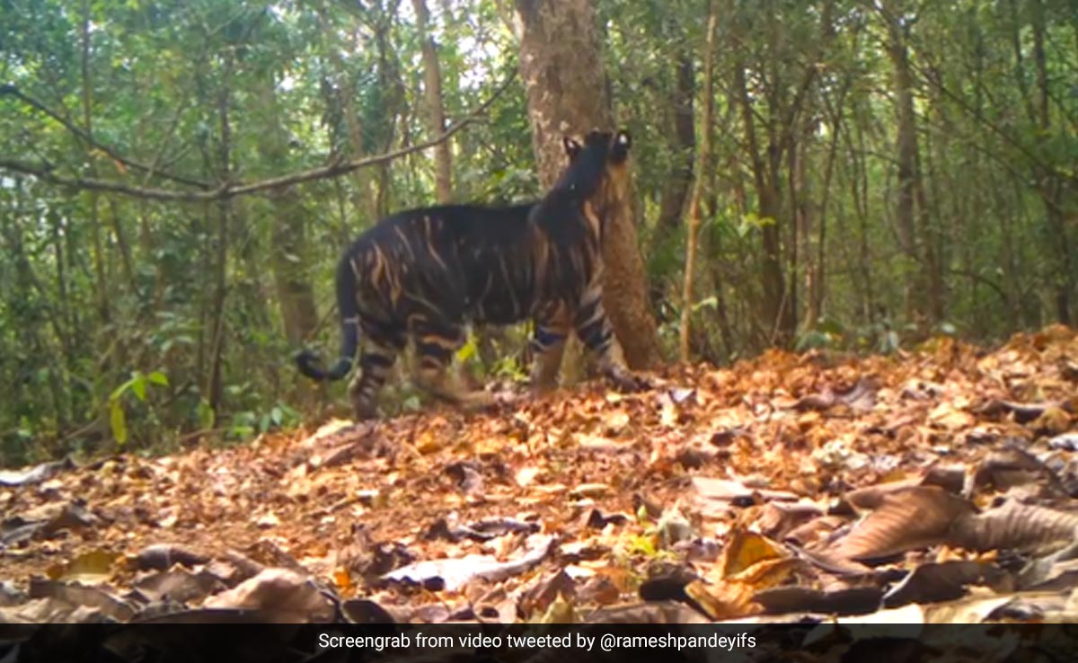 भारतीय वन सेवा (IFS) के अधिकारी रमेश पांडे (Ramesh Pandey) ने ट्विटर पर इस मेलेनिस्टिक बाघ का एक वीडियो शेयर किया है. इस बाघ को ओडिशा के सिमिलिपाल टाइगर रिजर्व (Similipal Tiger Reserve) में देखा गया था. पोस्ट के कैप्शन में, आईएफएस रमेश पांडे ने लिखा, "ओडिशा (Odisha) के सिमिलिपाल टाइगर रिजर्व में एक मेलानिस्टिक बाघ का खूबसूरत कैमरा ट्रैप वीडियो, एकमात्र स्थान जहां हम आबादी में आनुवंशिक उत्परिवर्तन के कारण काले रंग के बाघ देखते हैं."