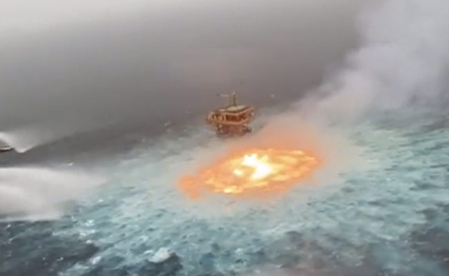 समुद्र के बीच से निकलती आग को देख घबराए दुनियाभर के लोग, पूछा-आखिर ये कैसा संकेत?