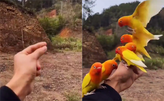 वायरल वीडियो में देखा जा सकता है कि कैसे एक शख्स हाथ से इशारा करता है. इशारा पाते ही जंगल की प्यारी चिड़िया आकर प्यार से हाथ पर बैठ जाती हैं. सोशल मीडिया पर यह वीडियो वायरल हो रहा है. इस वीडियो में देखा जा सकता है कि ये बहुत ही सुंदर चिड़िया हैं. लोगों को बहुत ही ज़्यादा पसंद आ रहा है.