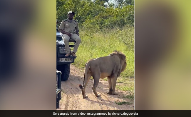 वायरल ह रहे इस वीडियो में आप देख सकते हैं जंगल सफारी पर गए ललोग अपनी गाड़ी पर बैठे हैं. कच्चा रास्ता है जहां पर दो गाड़िया आमने-सामने खड़ी हैं. तभी उनकी गाड़ियों के बीच टहलते हुए एक शेर वहां आता है और गाड़ी के बोनट पर बैठे शख्स के बेहद करीब पहुंच जाता है, इतना करीब की शेर को देखकर तो आदमी के होश ही उड़ जाएं. शेर जैसे ही करीब पहुंचा है गाड़ी पर बैठा वो शख्स बिल्कुल अपनी सांस रोककर पत्थर बन जाता है. बिल्कुल हिलता डुलता नहीं. शख्स को ऐसे देखकर शेर भी सीधे अपने रास्ते पर आगे बढ़ जाता है.
