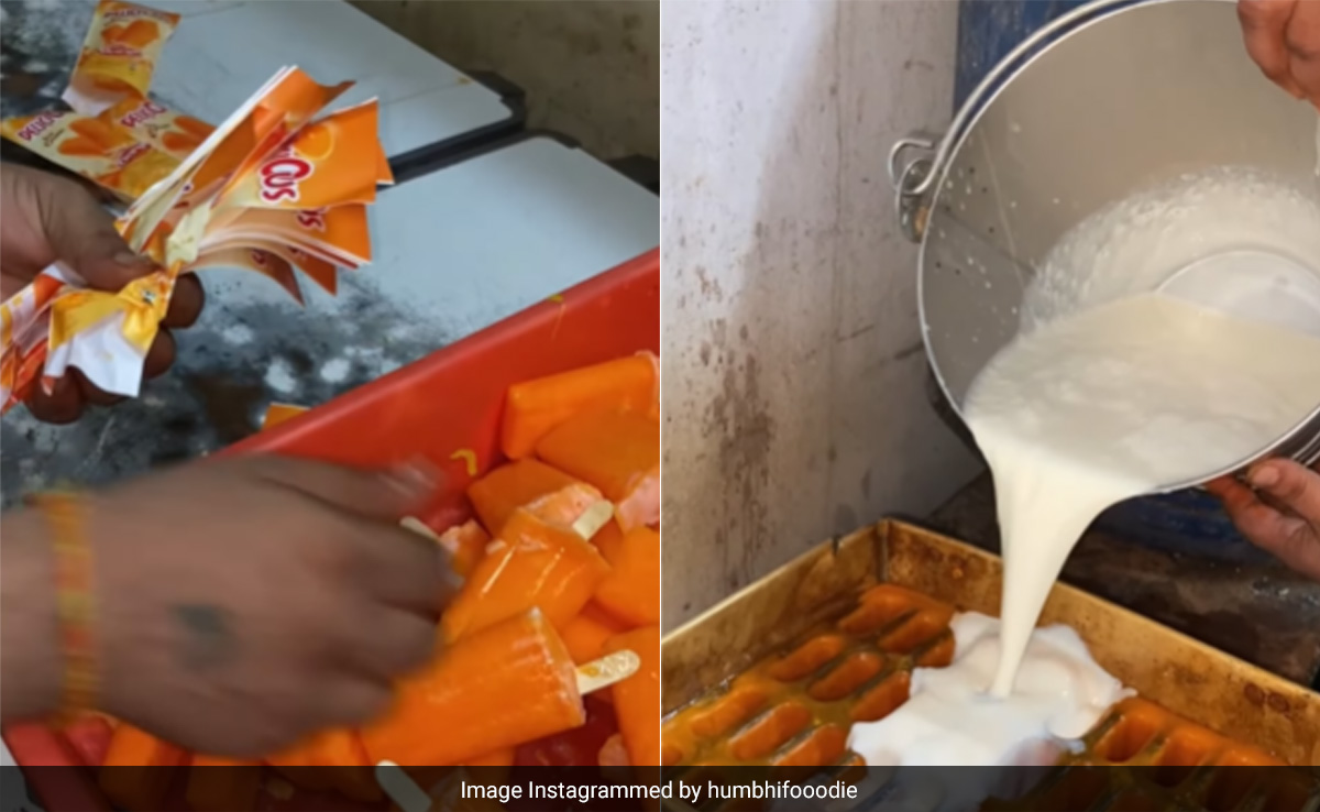 वीडियो को humbhifooodie नाम के अकाउंट से इंस्टाग्राम पर शेयर किया गया है. वीडियो में एक शख्स ऑरेंज आइसक्रीम (Orange ice cream) बनाता नजर आ रहा है. वह पहले बाल्टी से लेकर आइसक्रीम वाले सांचे में ऑरेंज सीरप वाला पानी डालता है फिर उसमें लाकर दूध मिलाता है. उसे फ्रीजर में जमाने के बाद एक टब में डाल दिया जाता है. जो काफी गंदा सा नजर आ रहा है. इससे आइसक्रीम निकाल कर एक बर्तन में रखी जाती है और फिर इसे पैकेट में डालकर पैक किया जाता है. लेकिन इस पूरे आइसक्रीम मेकिंग प्रोसेस में साफ-सफाई का बिल्कुल भी ध्यान नहीं रखा गया, जो साफ तौर पर नजर आ रहा है. वीडियो कैप्शन में लिखा है, ऑरेंज आइसक्रीम मेकिंग, कानपुर में 10 रुपए में सिर्फ.