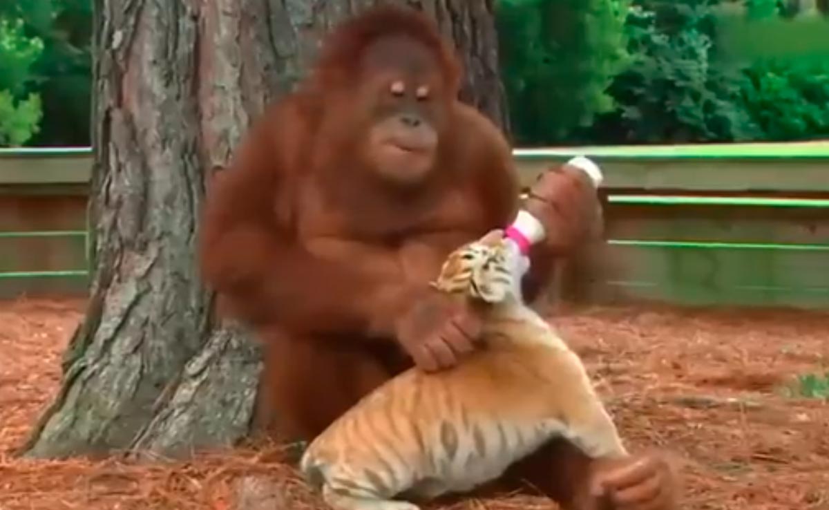 सोशल मीडिया पर जानवरों के वीडियो को लोग देखना बहुत ही ज़्यादा पसंद करते हैं. कई लोगों को जानवरों से बेहद लगाव है इसलिए ऐसे वीडियो को देखना पसंद करते हैं. अभी हाल ही में सोशल मीडिया पर एक वीडियो वायरल हो रहा है. इस वीडियो में देखा जा सकता है कि एक Orangutan बाघ के शावकों का ख्याल मां की तरह रख रहा है. कभी वो बच्चों के साथ खेल रहा है तो कभी किसी को दूध पिला रहा है. सोशल मीडिया पर इस वीडियो को देखने के बाद लोग काफी हैरान हो रहे हैं. इस वायरल हो रहे वीडियो पर कई यूज़र्स को अपनी प्रतिक्रियाएं दे रहे हैं.