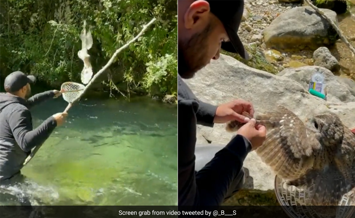 वीडियो को ट्विटर पर शेयर किया गया था और इसमें एक शख्स उल्लू को बचाने की कोशिश करता नजर आ रहा है. बेचारे पक्षी का एक पंख बुरी तरह तार में उलझा हुआ था और एक पेड़ की शाखा से खतरनाक तरीके से लटका हुआ था.
