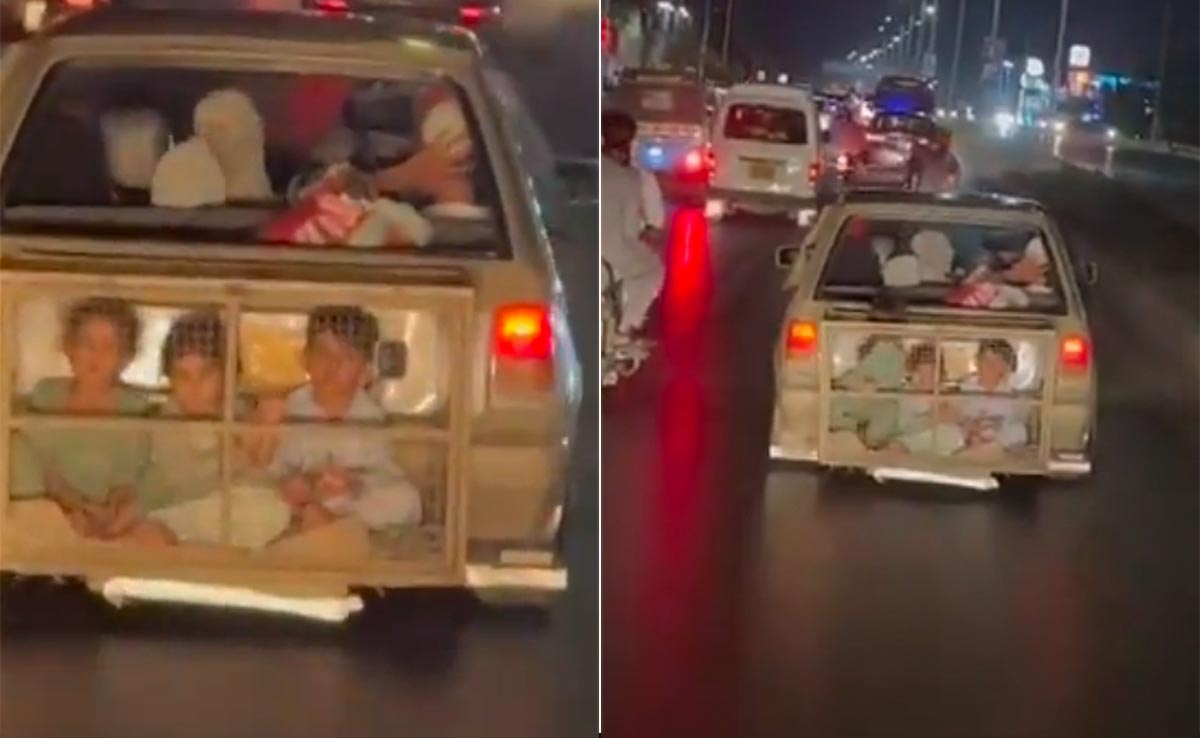 वीडियो में आप देख सकते हैं कि, कार की डिग्गी (Family modified car for kids sitting jugaad) में तीन बच्चे बैठे नजर आ रहे हैं. देखा जा सकता है कि, इस दौरान बच्चों का मुंह कार के डायरेक्शन में न होकर पीछे की तरफ ही है. इस दौरान उनके आगे एक जाली भी लगाई गई है, जो कि एक तरह से किसी पिंजड़े से कम नहीं लग रहा. बताया जा रहा है कि, वीडियो कराची में कैप्चर किया गया है. इस जुगाड़ वीडियो (Jugaad Video) को 17 अक्टूबर को सोशल मीडिया प्लेटफॉर्म एक्स (पूर्व में ट्विटर) पर @crazyclipsonly नाम के अकाउंट से शेयर किया गया है, जिसे अब तक 2.8 मिलियन लोग देख चुके हैं. महज 20 सेकंड के इस वीडियो को अब तक 17 हजार से ज्यादा लोग लाइक कर चुके हैं.