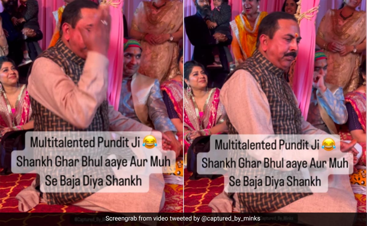 वायरल हो रहे इस वीडियो में आप देख सकते हैं कि शादी के मंडप में काफी मेहमान बैठे हैं. सभी पंडित जी को ध्यान से देख रहे हैं. और खूब हंस भी रहे हैं. आप वीडियो को ध्यान से देखिए पंडित जी (Pandit ji) अपने मुंह से ही शंख (Shankh) जैसी आवाज़ निकाल रहे हैं. जिसे देख वहां बैठे लोगों का हंस-हंसकर बुरा हाल हो गया है. वीडियो पर लिखे टेक्स्ट पर लिखा है, मल्टी टैलेंटेड पंडित जी शंख घर भूल आए और मुंह से बजा दिया शंख.