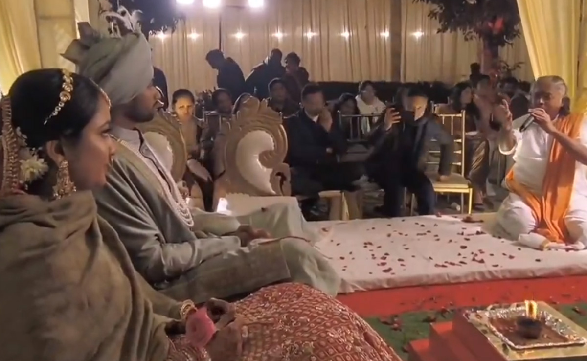 Wedding Viral Video: सोशल मीडिया पर शादी फंक्शन से जुड़े वीडियो अक्सर सामने आते रहते हैं, इनमें से कुछ वीडियो दिल को छू जाते हैं, तो कुछ हैरान कर देते हैं. हाल ही में शादी के मंडप का एक ऐसा ही वीडियो वायरल हो रहा है, जिसे देखकर आपके चेहरे पर भी एक प्यारी सी मुस्कान खिल उठेगी. वायरल हो रहे इस वीडियो में दूल्हा-दुल्हन के सामने मंडप के नीचे बैठे पंडित जी रोमांटिक गाना सुनाते नजर आ रहे हैं. वीडियो में देखा जा सकता है कि, कैसे पंडित जी ने शादी की रात ऐसा समां बांधा कि, हर कोई उनका फैन हो गया.