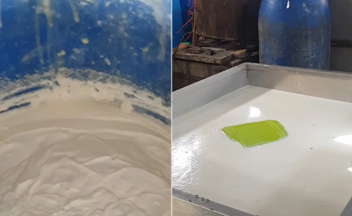वायरल हो रहा ये वीडियो राजस्थान (Rajasthan) के अलवर (Alwar) जिले की एक पनीर फैक्ट्री (Paneer Factory) का बताया जा रहा है. इस फैक्ट्री में बहुत बड़ी मात्रा में पनीर बनता है. इस पनीर फैक्ट्री में जिस तरह से पनीर बनाया जा रहा था, उसे देखकर यकीनन ये सोचना पड़ेगा कि पनीर सेहत के फायदे के लिए है या नुकसान के लिए. इस फैक्ट्री में बड़े-बड़े कंटेनर में पनीर बन रहा है, लेकिन जिन चीजों से पनीर बनाया जा रहा है, वो चौंकाने वाली हैं. वैसे तो पनीर बनाने के लिए दूध ही काफी होता है, लेकिन इस फैक्ट्री में पनीर बनाने के लिए चूना और पाम ऑयल तक इस्तेमाल किया जा रहा था. इतना ही नहीं साफ-सफाई के इंतजाम भी बिल्कुल नाकाफी ही थे.
