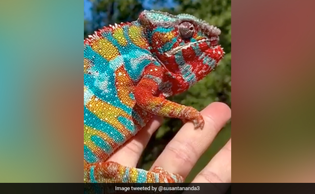 वायरल वीडियो में एक पैंथर गिरगिट को अपने विभिन्न को बदलते हुए दिखाया गया है जैसे कि किसी चित्रकार ने सरीसृप के शरीर पर रंग लगाया हो और उसे खूबसूरती से चित्रित किया हो.