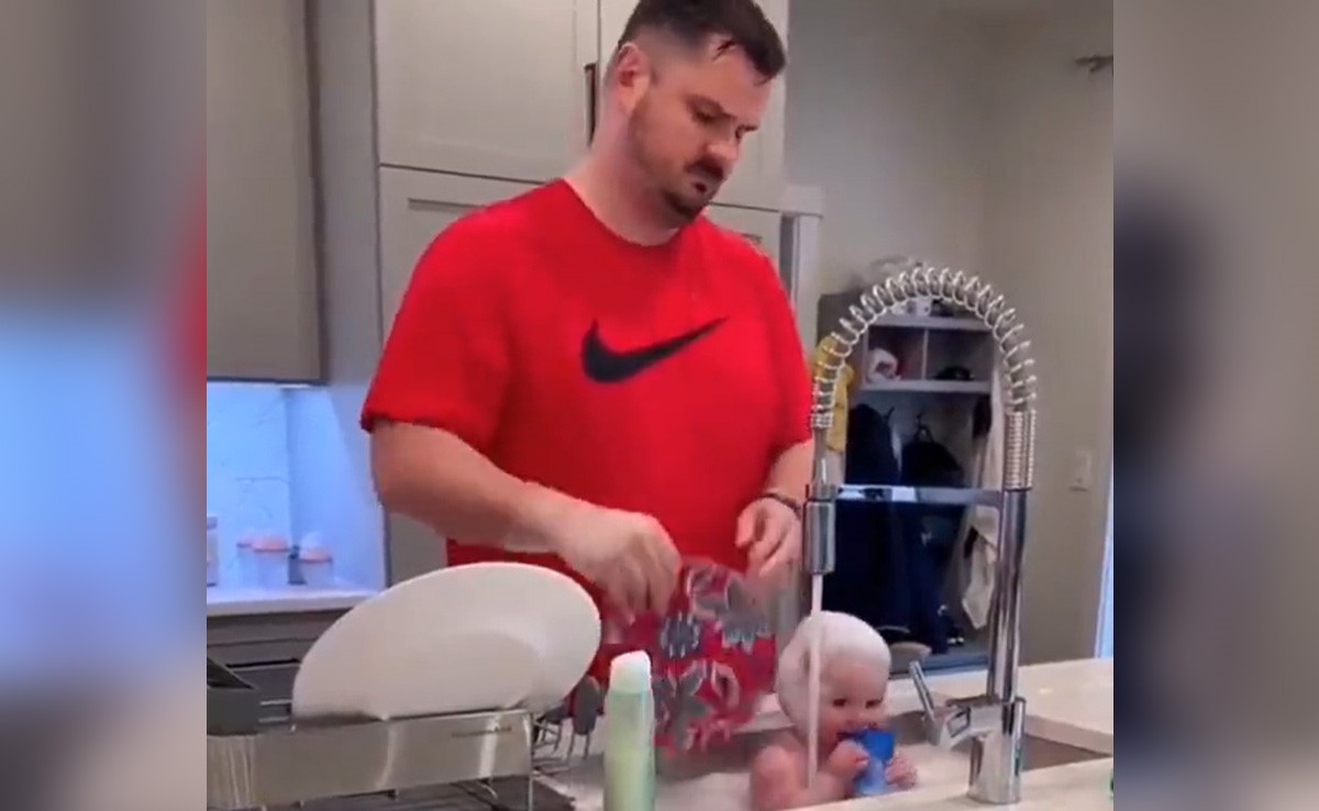 वायरल वीडियो में देखा जा सकता है कि कैसे एक पिता बर्त धोते हुए अपने बच्चे को पानी में नहला रहे हैं. सोशल मीडिया पर यह वीडियो वायरल हो रहा है. इस वीडियो को देखने के बाद सोशल मीडिया यूज़र्स हैरान हो रहे हैं. वायरल हो रहे इस वीडियो को Figensport नाम के ट्विटर यूज़र ने शेयर किया है.