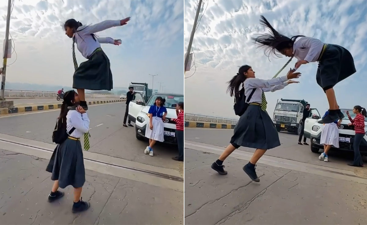 सोशल मीडिया पर वायरल होने का लोगों पर ऐसा जुनून चढ़ा है कि लोग अपनी जान को जोखिम में डालकर रील और वीडियो बना रहे हैं. इतना ही नहीं, रील बनाने के लिए लोग इस हद तक चले जा रहे हैं कि लोगों को न ही अपनी जान की परवाह है और न ही अपनी इज्ज़त की. ऐसा ही एक वीडियो अब सोशल मीडिया पर वायरल हो रहा है, जिसमें स्कूल की दो लड़कियां बीच सड़क पर खतरनाक स्टंट कर रही हैं.