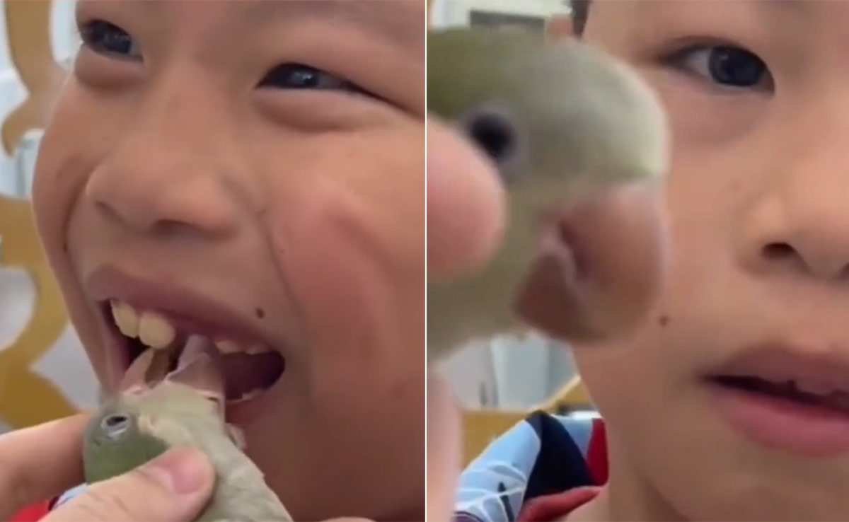 महज कुछ सेकेंड के वीडियो में दिख रहा है कि, एक शख्स अपन हाथों में तोते को लेकर एक बच्चे के पास जाता है. इसके बाद मुंह खोलकर खड़े बच्चे का एक टूटा हुआ दांत दिखता है. तोता अपने चोंच से बच्चे के कमजोर दांत को पकड़ कर बाहर खींच लेता है. बच्चा भी बिना रोए हैरान होकर तोते को देखने लगता है. अगले ही पल बच्चे का दांत तोते की चोंच में दबा हुआ नजर आता है.