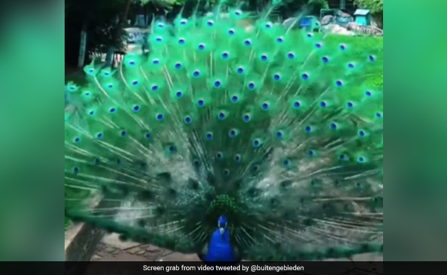 मोर (Peacock) कई वजहों से ग्रह पर सबसे खूबसूरत पक्षियों में से एक हैं. अपने इंद्रधनुषी पंखों के साथ, पंखे के आकार और उनके पंखों का शानदार प्रदर्शन उन्हें सबसे अलग बनाता है. सोशल मीडिया पर एक वीडियो सामने आया है जिसमें एक मोर का शानदार डांस दिखाया गया है, जो धीरे-धीरे अपने पंख खोलता है. डांस का मंत्रमुग्ध कर देने वाला वीडियो बुइटेन्गेबिडेन ने बुधवार को ट्विटर पर सिर्फ एक शब्द के कैप्शन के साथ शेयर किया है: "मोर..."
