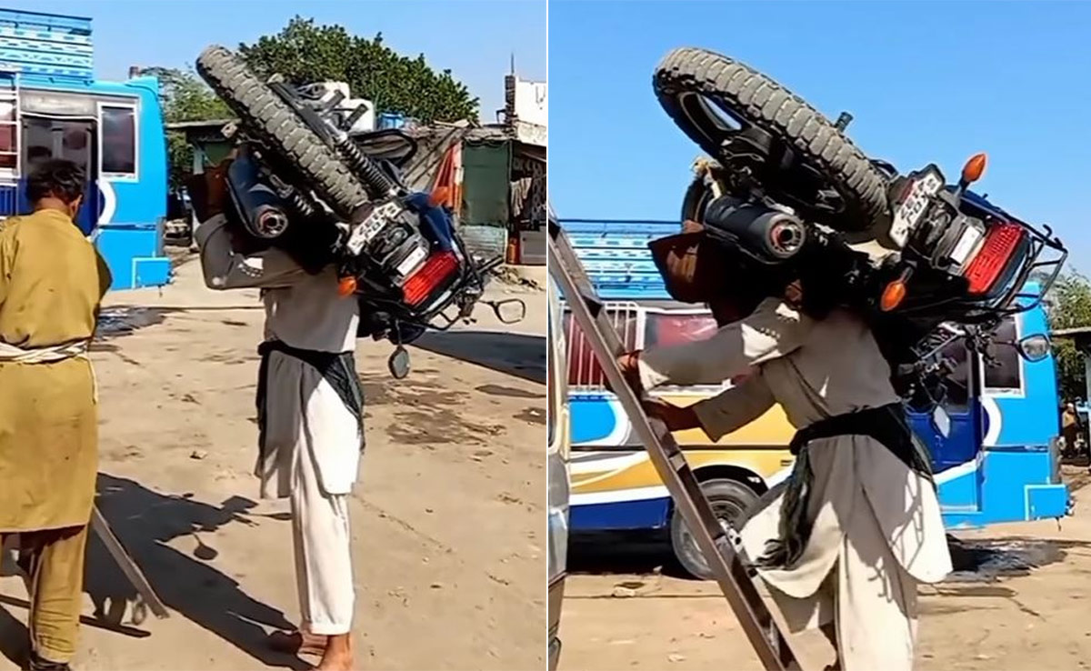 वीडियो में देखा जा सकता है कि तीन-चार लोग मिलकर एक वृद्ध व्यक्ति को पीठ पर बाइक उठाने में मदद करते हैं. पीठ पर एक तकिया रखकर बूढ़ा व्यक्ति भारी-भरकम बाइक उठा लेता है. इसके बाद पीठ पर भारी बाइक लादे हुए वह व्यक्ति एक चार पहिया वाहन से लगे सीढ़ी पर चढ़ जाता है. सीढ़ी पर चढ़ते हुए वृद्ध व्यक्ति बिना बैलेंस खोए, बहुत ही आराम से बाइक को चार पहिया वाहन के छत तक पहुंचा देता है. इस उम्रदराज और मेहनतकश शख्स का वीडियो सोशल मीडिया पर छाया हुआ है. यूजर्स इस वीडियो को देखकर इमोशनल हो रहे हैं और अपने जीवन में पिता के योगदान का गुणगान कर रहे हैं.