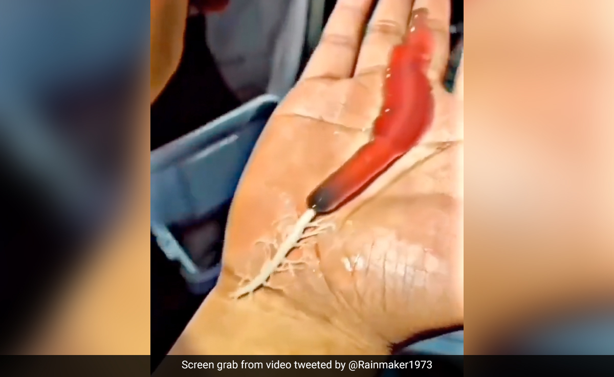 ट्विटर पर पोस्ट किए गए वीडियो में दिख रहा कीड़ा लाल रंग का है, जो जेली जैसा दिखता है. इसके मुख पर एक छोटी सी काली बिंदी होती है.